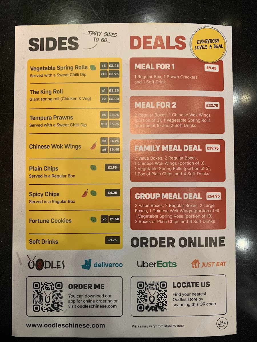 Welcome to Oodles Wok Southall, a culinary gem nestled at 166 The Broadway, Southall. This vibrant eatery specializes in fresh, flavorful Chinese cuisine that promises to tantalize your taste buds. The menu features delicious options like Caramel Chicken, Teriyaki Chicken, and Kung Po Chicken, alongside scrumptious sides such as Vegetable Spring Rolls and Spicy Chips that have garnered rave reviews from satisfied customers.